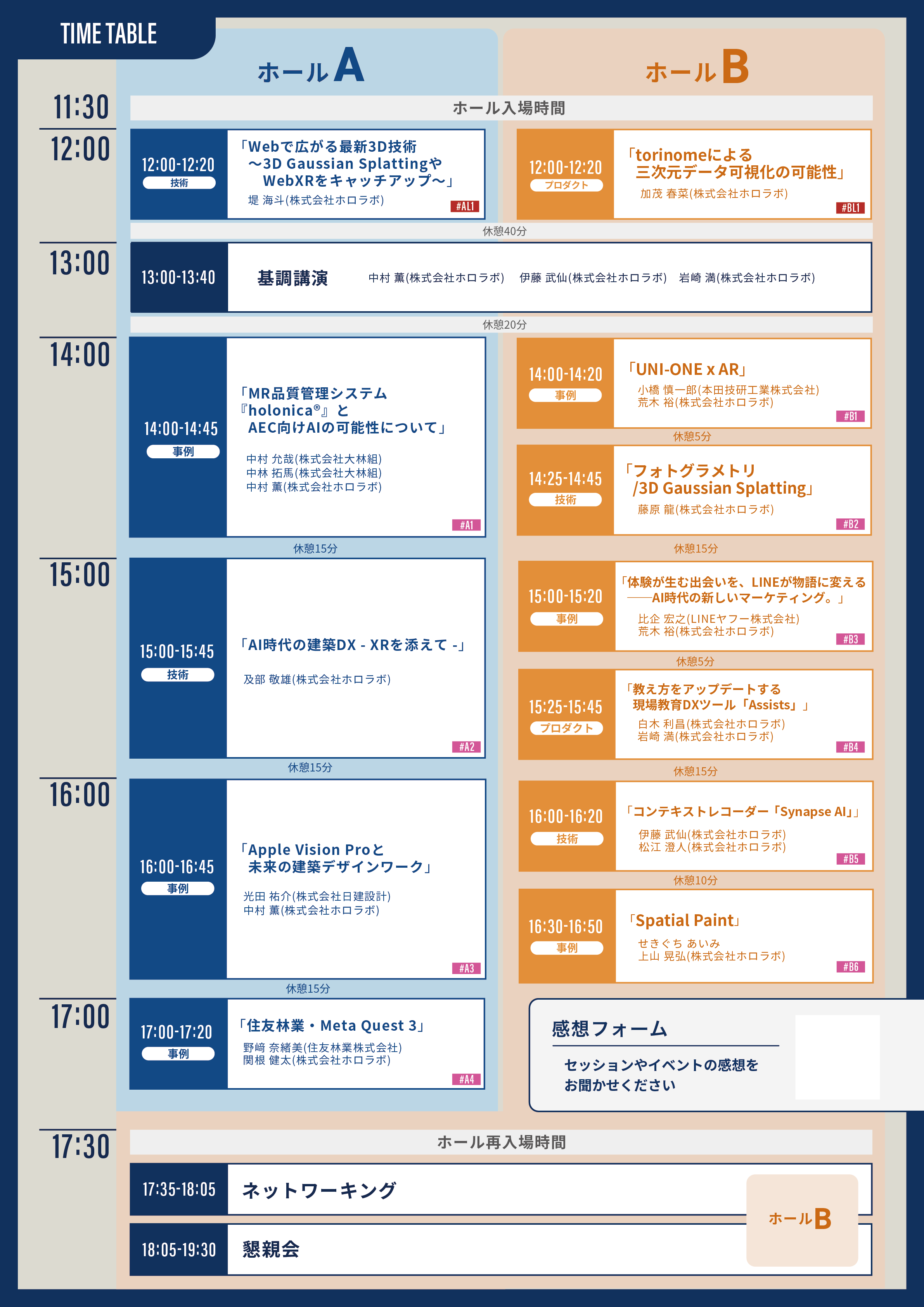 実用に向けた取り組みをされている各社様とホロラボ合同の事例やAIの活用についてのセッションを中心に実施します。
