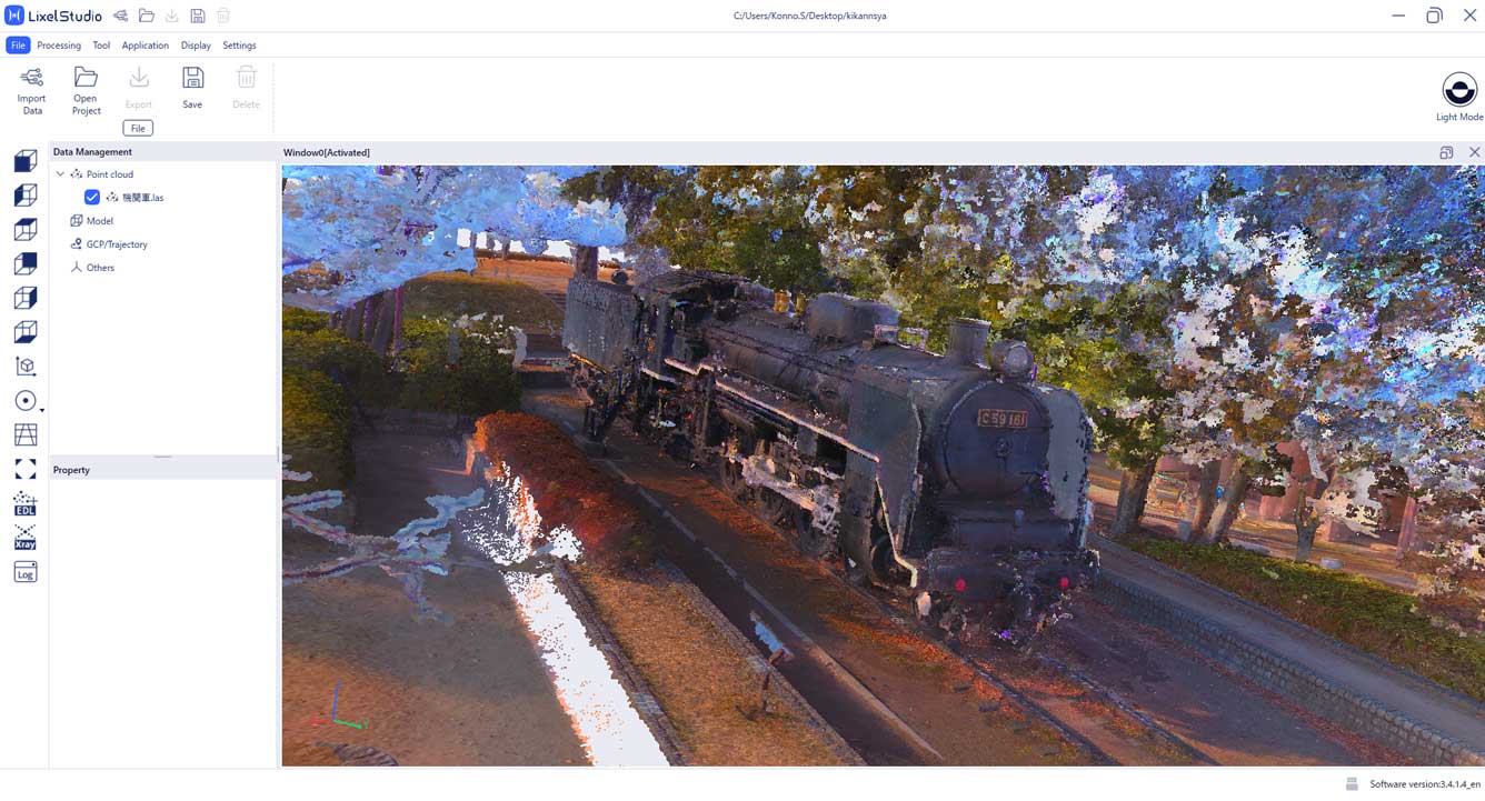 - 複雑に歩いてもしっかりマッピングができ、⾼精度な点群を⽣成できます。 Lixel Studioで変換すると厚み5mmのカラー点群を⽣成することができます